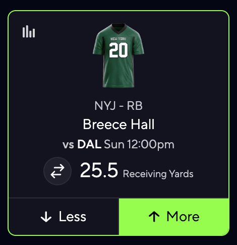 Breece Hall MORE THAN 25.5 Receiving Yards