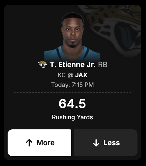 Etienne has been on a tear to start the season, going over this line in 3 of his 4 starts while averaging an impressive 6+ yards per carry. He’s been a steady workhorse for the Jaguars, logging at least 14 carries in every game. Now he draws a great matchup against a Chiefs defense that ranks among the bottom six in the league, allowing 4.9 yards per rush. With another strong workload expected under the Monday night lights, Etienne is in a prime spot to deliver again.