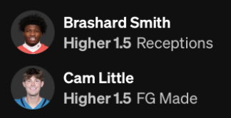 Brashard Smith MORE THAN 1.5 Receptions