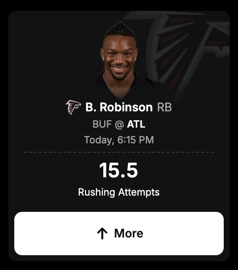 Bijan Robinson MORE THAN 15.5 Rush Attempts