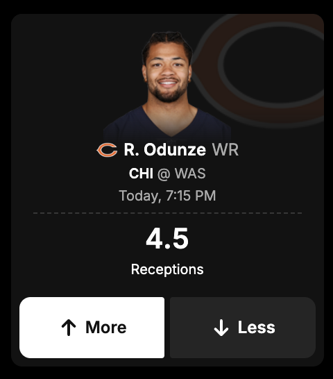 Odunze continues to be the clear focal point of the Bears’ passing attack, leading the team in target share by a wide margin and drawing at least 7 looks in every game this season. As 5.5-point underdogs heading into Washington, Chicago will likely need to lean heavily on the passing game to keep up. Fortunately, the Commanders’ secondary has been vulnerable, ranking in the bottom third of the league in passing yards allowed. That sets up nicely for Odunze to stay busy once again and rack up another strong stat line as the Bears play from behind.