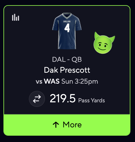 Dak Prescott MORE THAN 219.5 Passing Yards (Goblin)