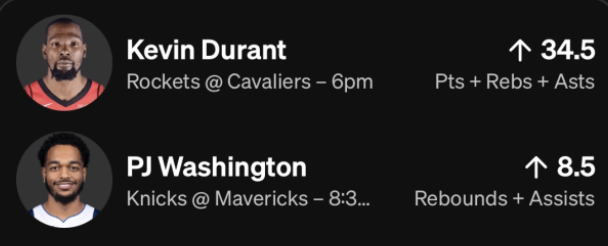 Durant has cleared this line in 3 of his last 4 outings and is clearly starting to find his rhythm with the Rockets. Now he draws a matchup against a Cleveland team that ranks bottom-five in the league in points, rebounds, and assists allowed to opposing power forwards—a perfect setup for someone with Durant’s versatility. With his confidence building and the matchup working heavily in his favor, this is a great spot for Durant to put together another big performance.